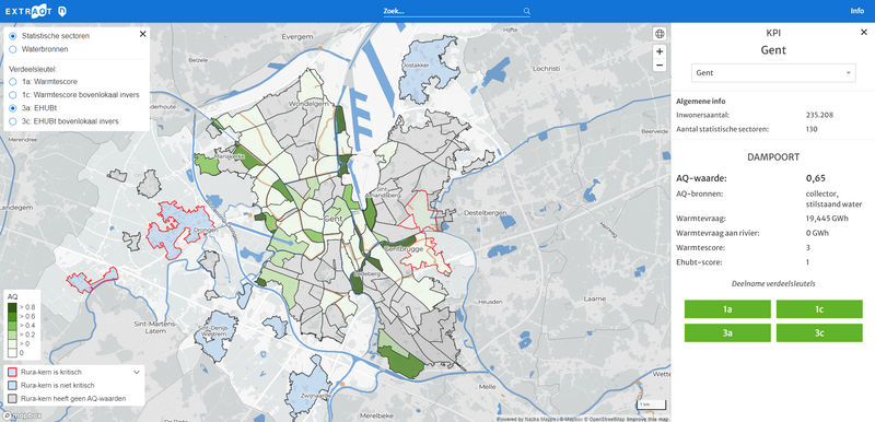 The East Flemish waterscape contains a huge potential in energy. Hence, aquathermal energy is an important building stone for the energy policy of the Belgian province. Our technical partner Extraqt has released a complex model of extraction and regeneration on a 'digital twin' of the provincial river network. Nazka Mapps took care of the visualisation via an innovative and interactive river scheme. What is the aquathermal potential in your neighbourhood?